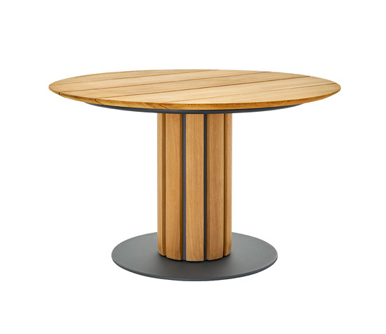 Tischgestell Teak massiv, unbehandelt, gelattet, Edelstahl AISI 304 und Aluminium pulverbeschichtet graumetallic