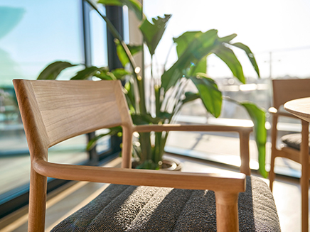 TEVA schafft eine entspannte, natürliche Atmosphäre –– für Räume, die atmen. Ob im Wohnzimmer, auf der Terrasse oder im Wintergarten. Im Mittelpunkt steht ein filigran gearbeiteter Sessel aus Teakholz – leicht in der Form, stark im Ausdruck. Mit seinen feinen Konturen und handwerklich präzisen Details strahlt er Ruhe, Klarheit und natürliche Eleganz aus. Der runde Mittelsäulentisch ergänzt das Ensemble mit kraftvoller Präsenz und ruhiger Ausstrahlung und vollendet das stimmige Gesamtbild.